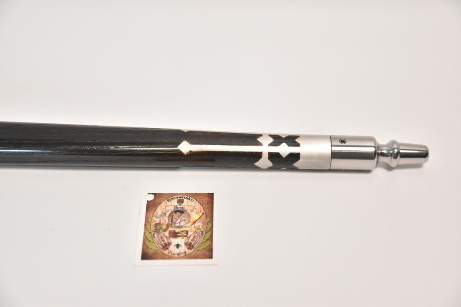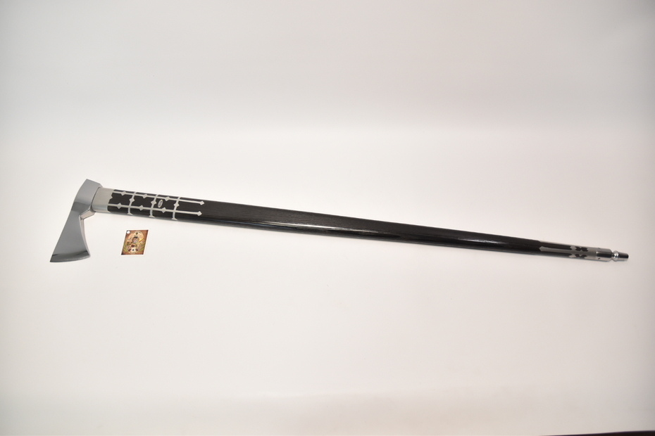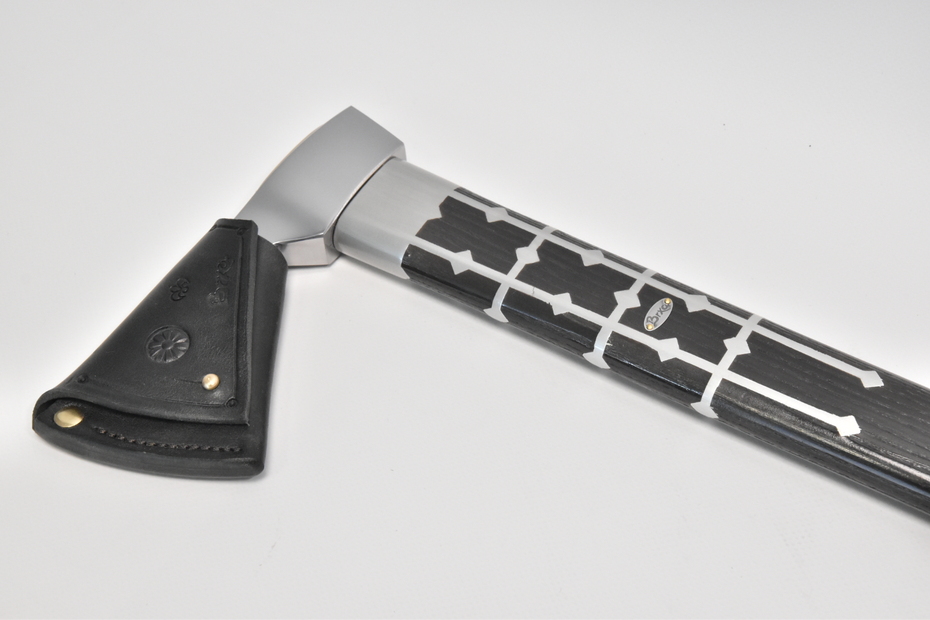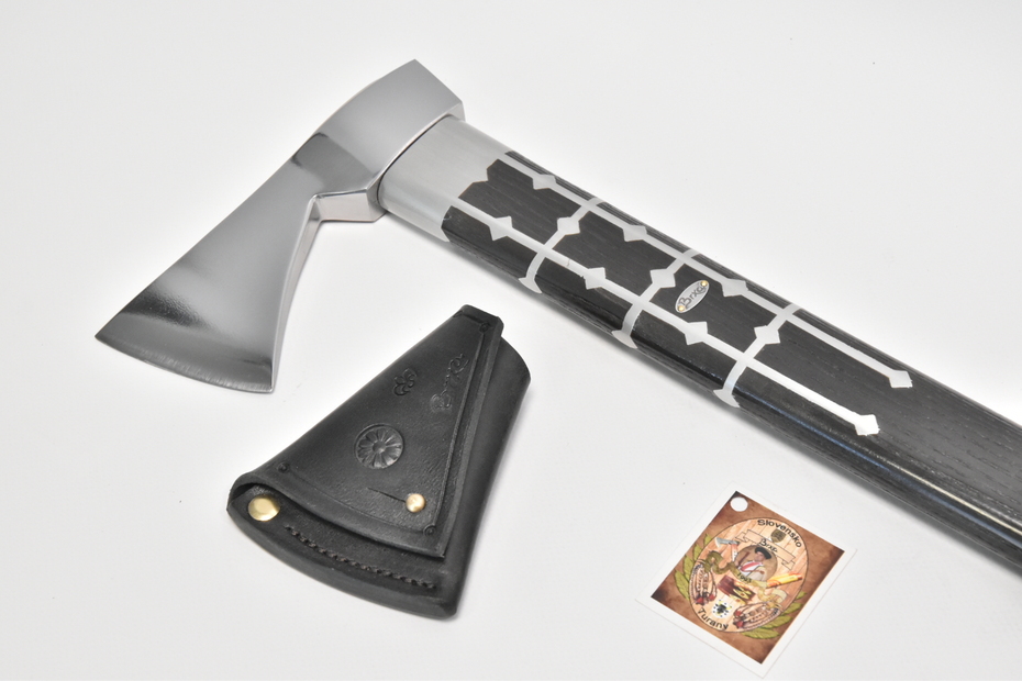 Kapitánska valaška útočná oceľová, zdobenie: vylievaná rúčka cín+striebro, farba: čierna + Kožené puzdro na čepeľ