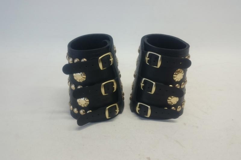 Trojprackový zápästník, zdobenie: ražba, mosadzné ozdoby, farba: čierna